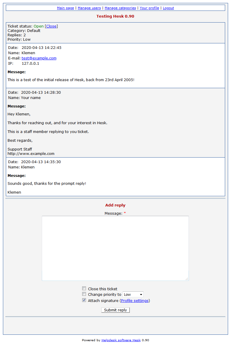 Klemen decided to create a help desk from scratch and share it with the world (be gentle, this was in 2005 😅):